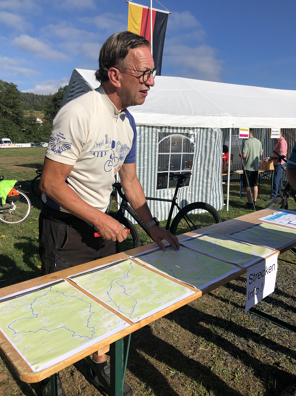 Erstmals gab es eine 120-Kilometer-Rennradstrecke, die von der Rhön an den Main in Gemünden führte. Viele scheuten nicht den kurzen Abstecher an den Fluß, um dort noch ein Selfie zu machen. Wem der Weg nach Gemünden zu weit war, bog im Sinngrund ab, um wieder zum Ausgangspunkt zu kommen. Ebenfalls zum ersten Mal gab es eine E-Bike-Tour rund um den Truppenübungsplatz Wildflecken, beinahe ausschließlich auf Fahrradwegen.